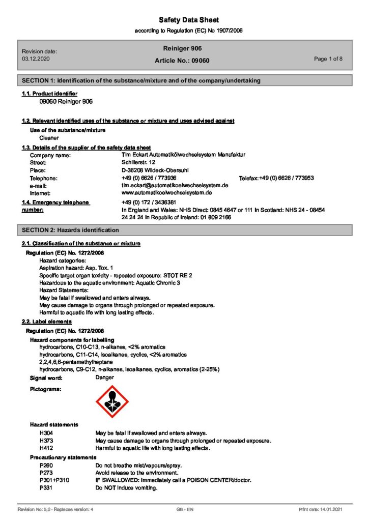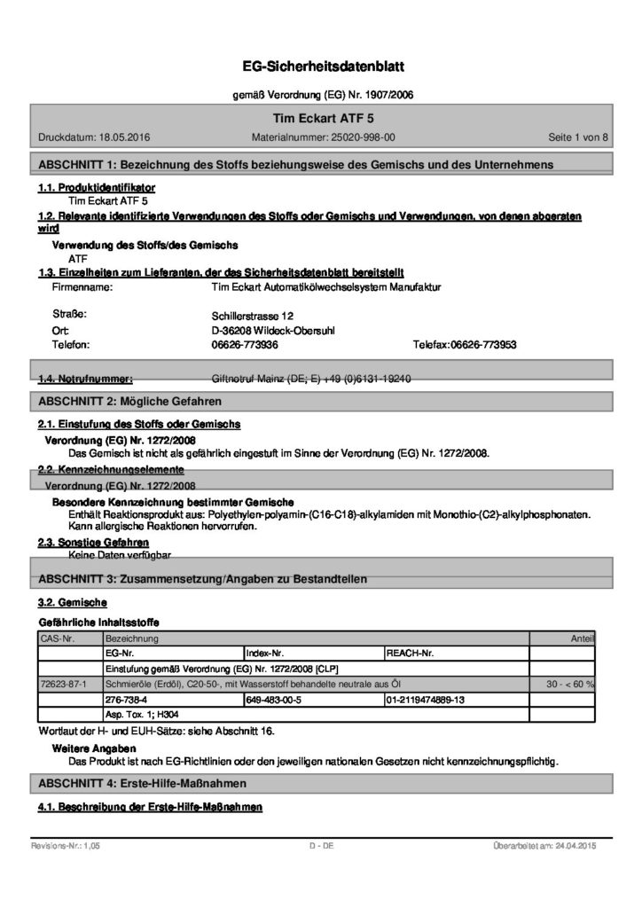 Umgangsfreigabe der Daimler AG Betreff Arbeitssicherheit und gelistet bei der Gefahrstofferfassungsstelle!